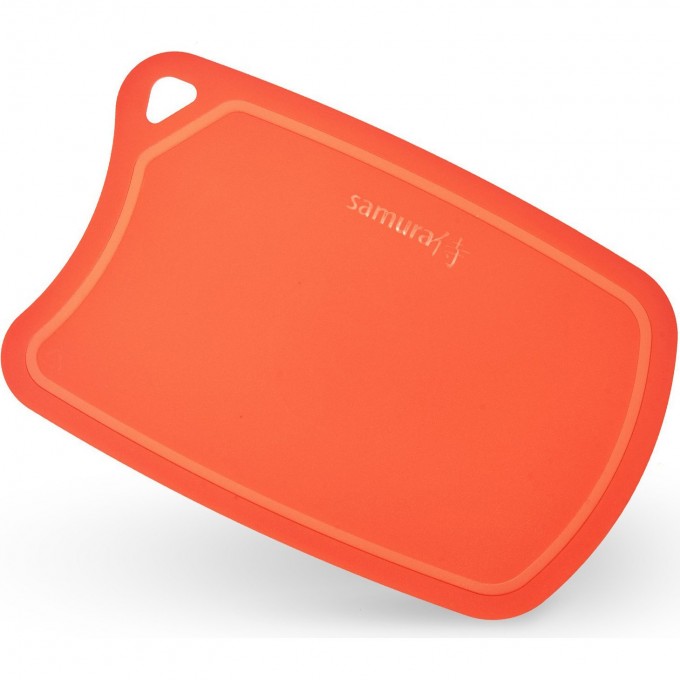 Красная разделочная доска Samura изготовлена из устойчивого к высоким температурам полиуретана.